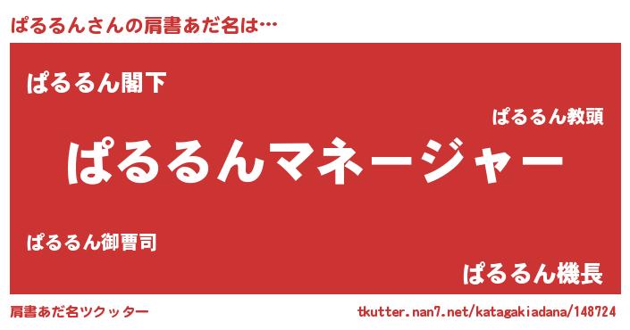 | 男性向けラノベタイトル風あだ名 | 『ぱるるんに滅ぼされるだけの簡単なお仕事です』 |