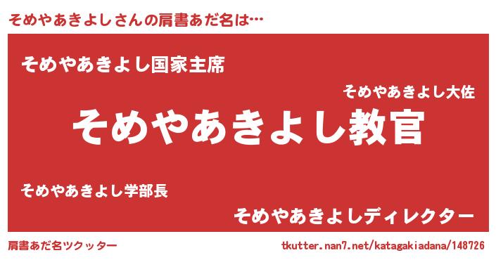 | 男性向けラノベタイトル風あだ名 | 『この素晴らしい世界にそめやあきよしを!』 |