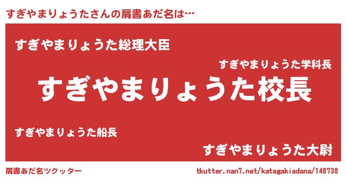 | 男性向けラノベタイトル風あだ名 | 『すぎやまりょうたという概念が存在しない退屈な世界 』 |