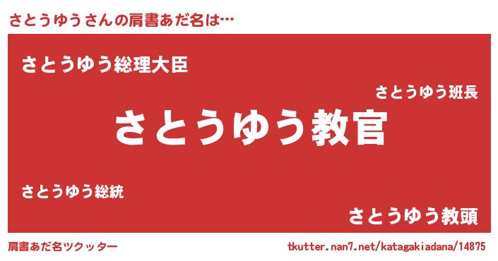 | 意味不明あだ名 | 『住所不定無職さとうゆう(47歳)』 |