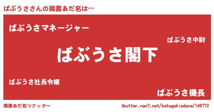 | 欧米人風あだ名 | 『ケンブリッジばぶうさ』 |