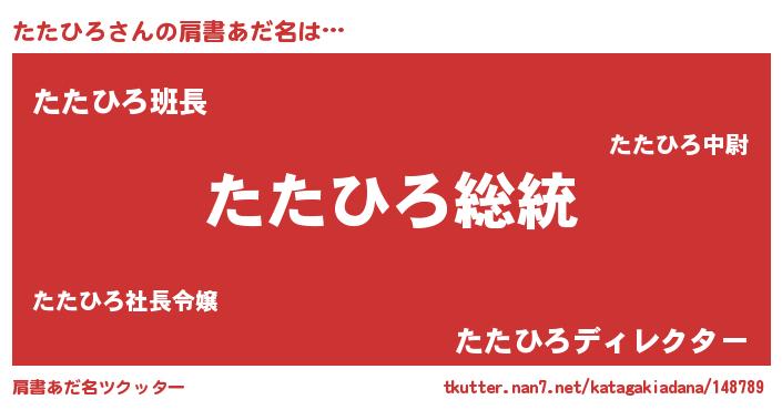 | ポケモン風あだ名 | 『タタセウス』『ヒタタヒロ』 |
