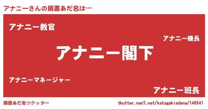 | 女子向けラノベタイトル風あだ名 | 『闇のアナニー』『アナニーは平凡を望む』 |