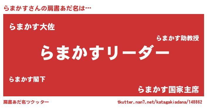 | ヒーロー風カッコイイあだ名 | 『幻影騎士ラマ』『ウルトラらまかすマン』 |