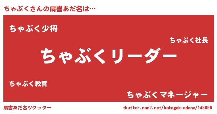 | 男性向けラノベタイトル風あだ名 | 『ちゃぶくの嫁は女の子じゃないと思った?』 |