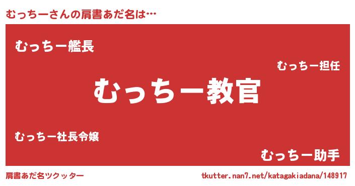 | 男性向けラノベタイトル風あだ名 | 『魔弾の王とむっちー』『むっちーの憂鬱』 |