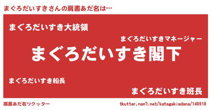 | 意味不明あだ名 | 『自称まぐろだいすき』 |