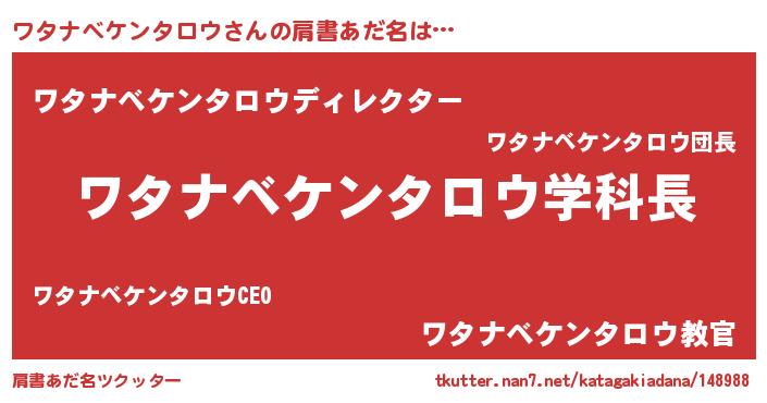 | 男性向けラノベタイトル風あだ名 | 『ノーゲーム・ノーワタナベケンタロウ』 |