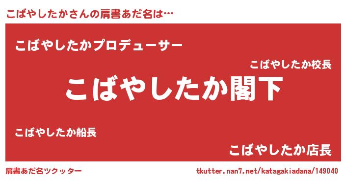 | 意味不明あだ名 | 『自称こばやしたか』 |