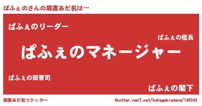 | 意味不明あだ名 | 『とにかく怪しいぱふぇの』 |