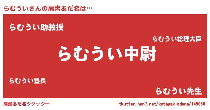 | 可愛いあだ名 | 『らむぷりん』『らむちゅっちゅ』 |
