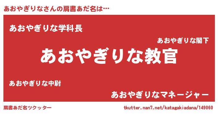 | 欧米人風あだ名 | 『ダレノガレあおやぎりな』 |