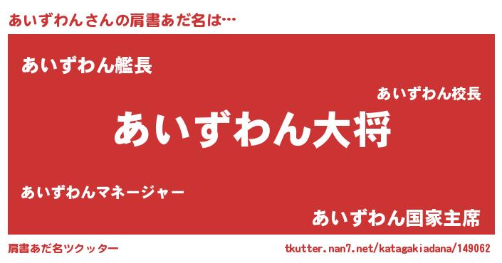 | 男性向けラノベタイトル風あだ名 | 『あいずわん~年齢イコール彼女いない歴の魔法使い~』 |