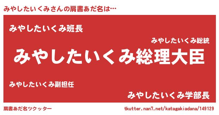 | ポケモン風あだ名 | 『ミヤシダネ』『ヒミヤシタイクミ』 |