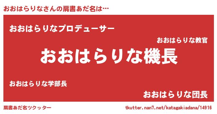 | 意味不明あだ名 | 『とにかく怪しいおおはらりな』 |