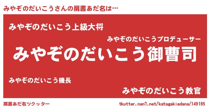| 男性向けラノベタイトル風あだ名 | 『みやぞのだいこうの憂鬱』 |
