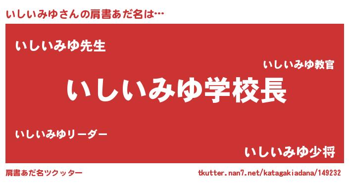 | ヘコむあだ名 | 『いしいみゆ(爆)』『いしお』 |