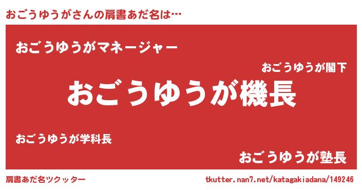 | 男性向けラノベタイトル風あだ名 | 『うちのおごうゆうがが世界を掌握している!』 |