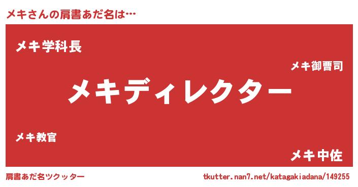 | ヒーロー風カッコイイあだ名 | 『天空の使者メキ』『スーパーメキ』 |