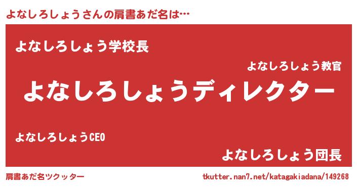 | 男性向けラノベタイトル風あだ名 | 『よなしろしょうに滅ぼされるだけの簡単なお仕事です』 |