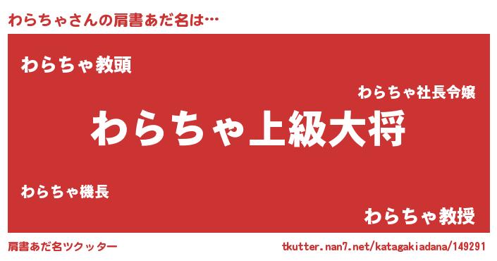 | ヒーロー風カッコイイあだ名 | 『ネオワラチャ』『愛の使者わらちゃ』 |