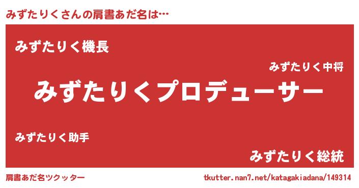 | 意味不明あだ名 | 『自称みずたりく』 |