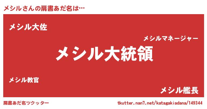 | ファンタジー風あだ名 | 『エターナルメシルー』『カークメシラー』 |