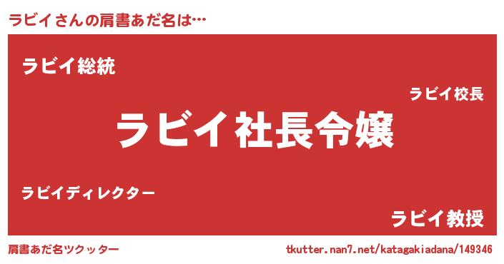 | 男性向けラノベタイトル風あだ名 | 『ラビイの憂鬱』『はたらくラビイさま!』 |