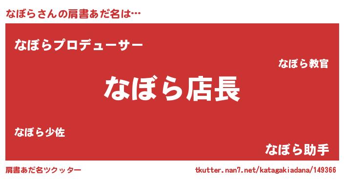 | 男性向けラノベタイトル風あだ名 | 『なぼらの憂鬱』『はたらくなぼらさま!』 |