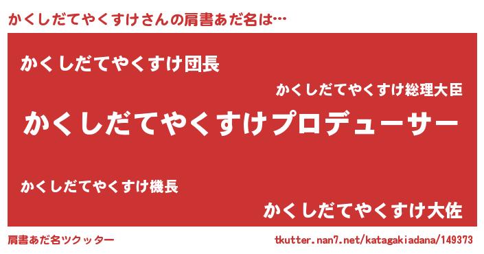 | 意味不明あだ名 | 『とにかく怪しいかくしだてやくすけ』 |
