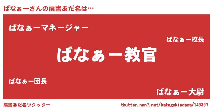 | ヒーロー風カッコイイあだ名 | 『仮面バナダー』『ネオバナァー』 |