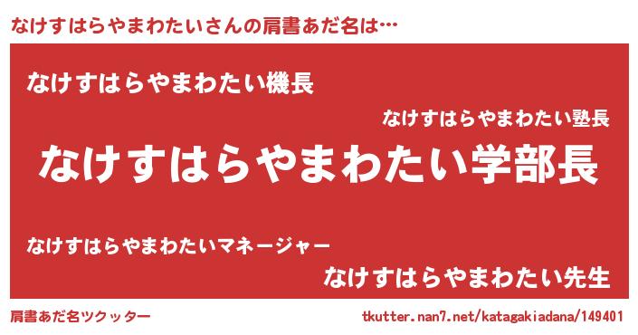 | ヒーロー風カッコイイあだ名 | 『慈愛の使者なけすはらやまわたい』 |