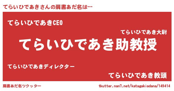 | ヘコむあだ名 | 『てらふぇ~』『てらいひであき(笑)』 |