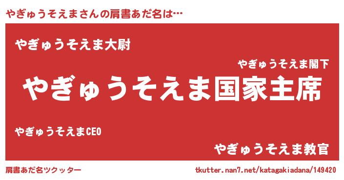 | 欧米人風あだ名 | 『やぎゅうそえまクリステル』 |
