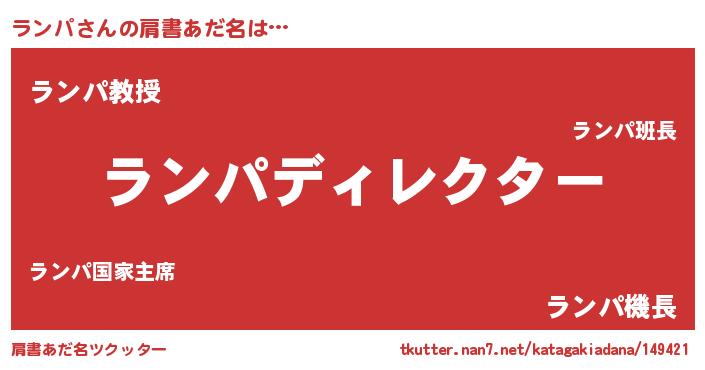| 欧米人風あだ名 | 『アンジェラ・ランパ』『ダニエルランパ』 |