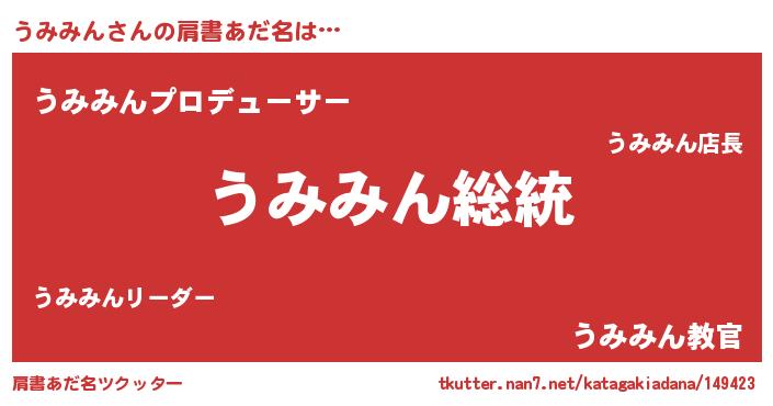 | 男性向けラノベタイトル風あだ名 | 『Re:うみみんから始める異世界生活』 |