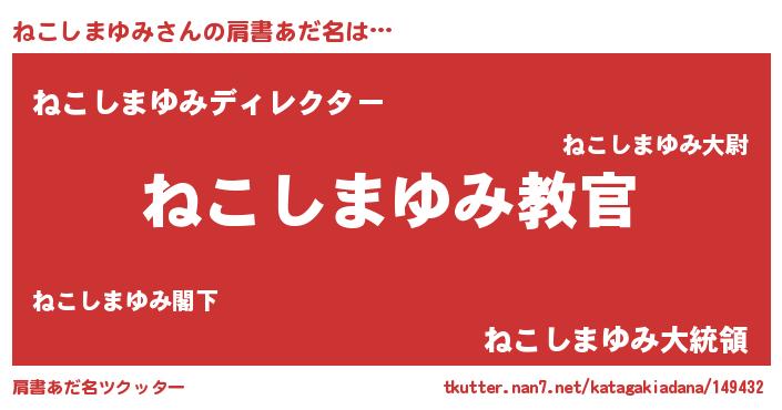 | 男性向けラノベタイトル風あだ名 | 『この素晴らしい世界にねこしまゆみを!』 |