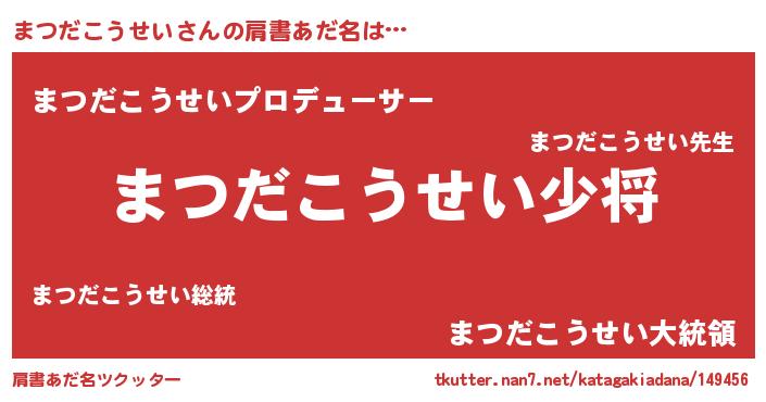 | 男性向けラノベタイトル風あだ名 | 『まつだこうせい~年齢イコール彼女いない歴の魔法使い~』 |