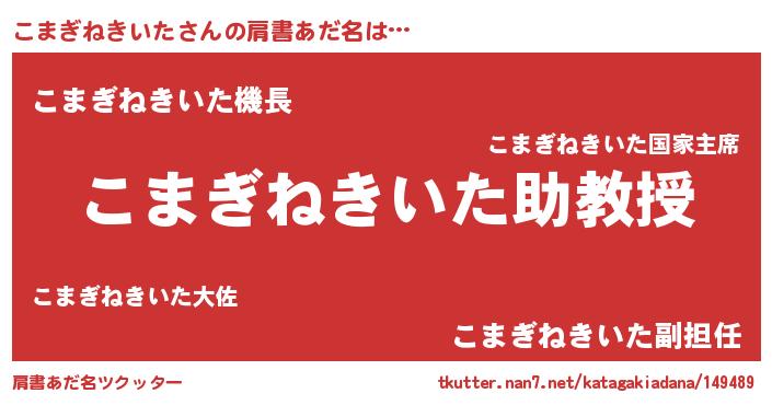 | 男性向けラノベタイトル風あだ名 | 『おまえをオタクにしてやるから、俺をこまぎねきいたにしてくれ! 』 |