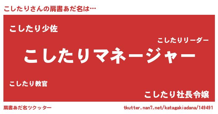 | 恥ずかしいあだ名 | 『プリティーこしたり』『コシリンリン』 |