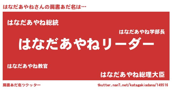 | 伝説のあだ名 | 『解き放たれた遊び人はなだあやね』 |