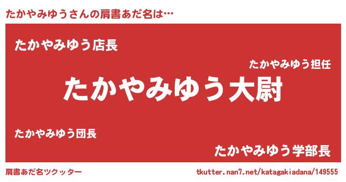 | 男性向けラノベタイトル風あだ名 | 『たかやみゆう~年齢イコール彼女いない歴の魔法使い~』 |