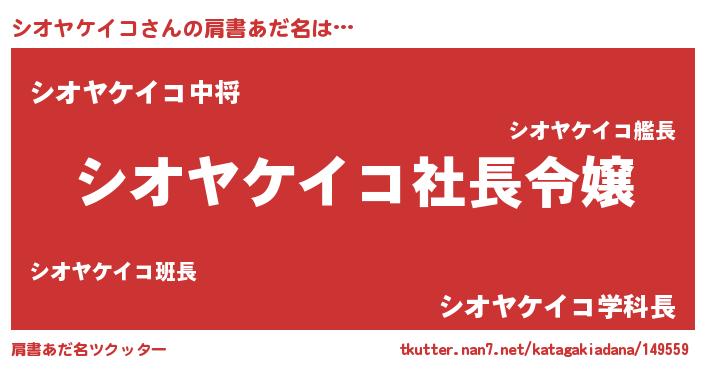 | ヒーロー風カッコイイあだ名 | 『スーパーシオヤケイコ』『幻影騎士シオ』 |