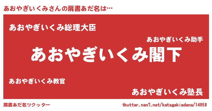 | 欧米人風あだ名 | 『ケンブリッジあおやぎいくみ』 |
