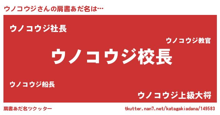 | 男性向けラノベタイトル風あだ名 | 『ウノコウジという概念が存在しない退屈な世界 』 |