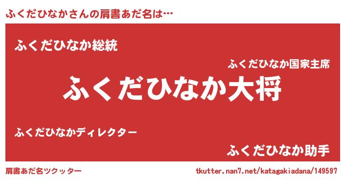 | 男性向けラノベタイトル風あだ名 | 『転生したらふくだひなかだった件』 |