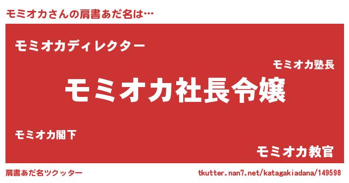 | ファンタジー風あだ名 | 『モミフェル』『ヴァルモミーナ』 |