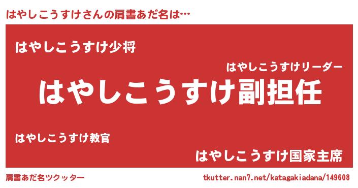 | 男性向けラノベタイトル風あだ名 | 『はやしこうすけという概念が存在しない退屈な世界 』 |