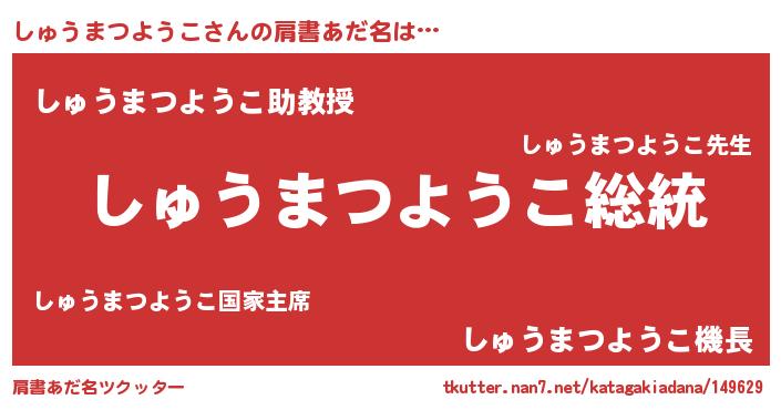 | 意味不明あだ名 | 『自称しゅうまつようこ』 |