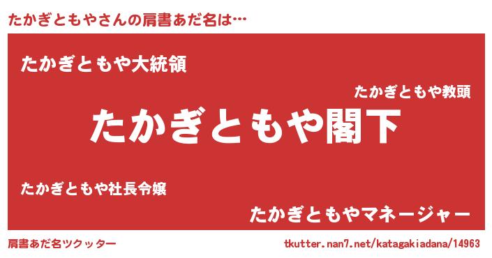 | 意味不明あだ名 | 『自称たかぎともや』 |